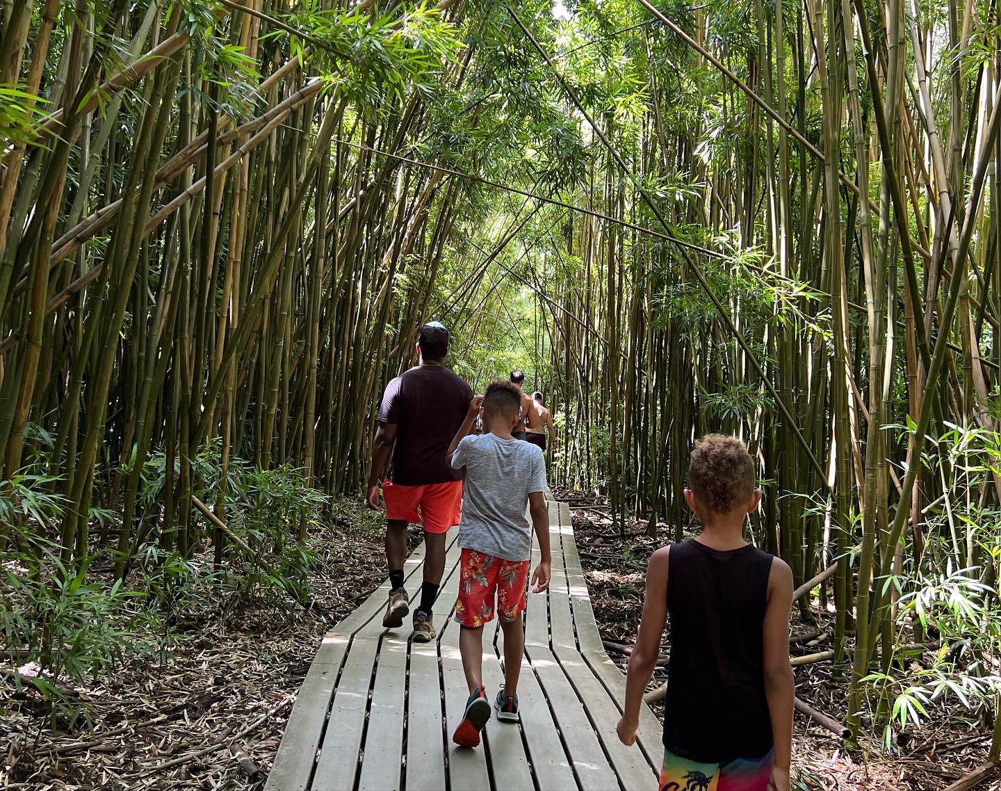 - Waimoku Falls can be accessed via Pipiwai Trail. The Pipiwai Trail begins at the Kīpahulu Visitor Center and is a 3.4 mile out-and-back hike. The trail is well maintained and considered to be an easy to moderate hike with some incline. This hike will guide you through the infamous bamboo forest to the base of a banyan tree, and eventually ending at Waimoku Falls. These falls drops an extraordinary 400 feet into green lush forest. We got to the trail late afternoon and the sun was sweltering. After our already long exhilarating day, the kids were toast so we only hiked to the lookout point of the falls, which was a little over a mile. Definitely looking forward to making it to the bottom the next time we are in town!