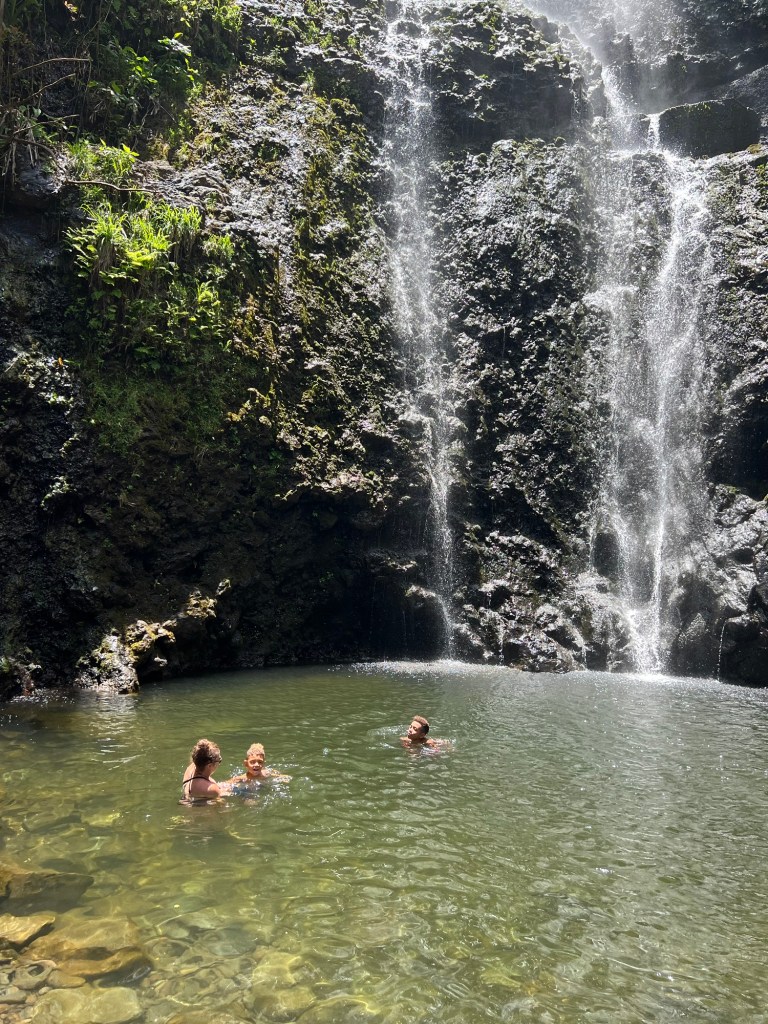 When planning your adventure on the Road to Hana, you need to consider how much time you have committed to this journey, keeping in mind you do have to make the drive back, which does take over an hour to do so. You also need to consider the capabilities of those in your party. While our kids were experienced hikers and quite the troopers, this was a long day for them and they really were running on fumes by the end. We definitely did not pack enough snacks or plan well for lunch. Definitely prioritize what you want to see and do and remember that you will not be able to make every stop or see everything on your list. If your goal is to swim in as many waterfalls as Hana has to offer, you may want to skip the Garden of Eden or some of the other lookout spots to have time for not only the hike to the waterfall but also for the time to enjoy the reason you are there in the first place. For me, I would definitely prioritize Waianapanapa State Park, making sure to reserve a spot, and Waimoku Falls, saving time and energy to hike to the bottom. I would also consider starting at the end of Road to Hana at Waimoku Falls and driving backwards. I think by beginning early morning at the end of the Road to Hana many of the hikes would be less busy, the morning temperatures would be ideal for the longer hike along Pipiwai Trail, and when you are at the end of your trip, you are already close to a more populated town with food options. Something I will definitely consider for next time!