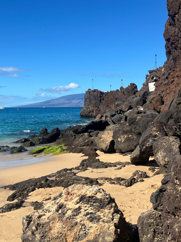 - BLACK ROCK is a great snorkeling spot located directly in front of the Sheraton Maui Resort & Spa in Ka’anapali near Lahaina. It is within walking distance from The Westin Maui and Whalers Village in Lahaina. It can become quite busy as they day goes on so I would highly recommend going early. We found that the surf is much calmer in the morning and it is a great time to see sea turtles feeding off of the coral. For unsure swimmers, a floatation device or life vest would be recommended as it gets quite deep a short distance off the shore. There are a couple of different shops where you can rent snorkel gear; however, if you would prefer to take your own gear, our family loves this Oceanic Snorkel Set from Amazon. It is adjustable to fit adults and older kids and it is very durable. For those looking for even more adventure, you can swim out towards the end of the rock and climb up and jump off Black Rock! It is very thrilling! However, always use your best judgment based on your ability level and always use high caution when attempting these types of adventures!