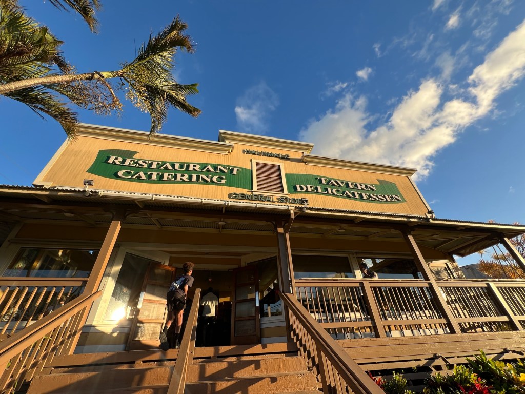 - HALI’IMAILE GENERAL STORE is a lovely restaurant inside a general store that was built in the 1940’s. The original location is located off the beaten path on your way to Haleakala. They have a second location in Kihei. They have great house drinks and offer more traditional Hawaiian dishes of ahi noodles and seafood curry, along with more traditional farm to table dishes, such as onion soup and steak. This meal was delightful!